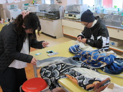 母Pの皆さんが鯉のぼりの補修作業に取り組んでくださいました。