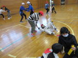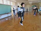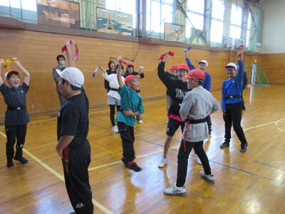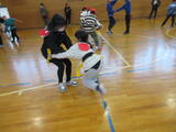 体育館では、1年生と6年生が保健委員会レクで『しっぽとり』をしていました。