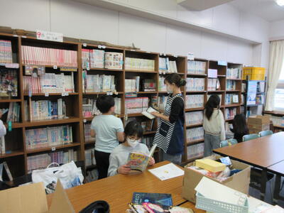 4年生が図書室にいました。本を読んで感想文を書くそうです。