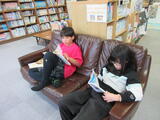 図書協力員さんに相談しながら本を選び、思い思いの場所で場所で読書をしていました。