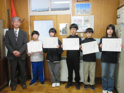 宗谷教育局の千代義務教育指導監が来校し、絆づくりメッセージコンクールの表彰をしていただきました。