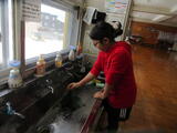 5年生が家庭科室で調理実習をしていました。