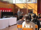 6年生が卒業式の練習をしていました。背筋を伸ばした立派な態度で、担任のおもしろ祝辞にも笑いをこらえて姿勢をキープしていました。