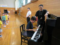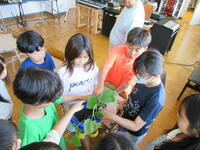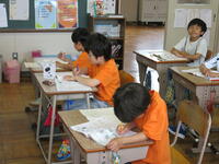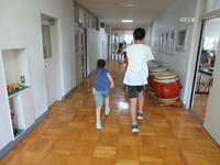 今日の大岬小は微風の28℃です。道内各地に比べると涼しいようにも感じますが、暑さに慣れていない私たちは汗だくです。教室をのぞくと、1年生が鍵盤ハーモニカを吹きながら行進の練習、4年生はキュウリの植え替え作業をしていました。