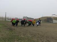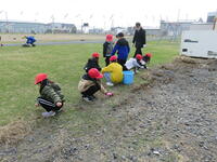 雪がすっかり溶けて、グラウンドでの活動ができるようになったと思ったら、大量の砂利が堆積しているのを発見。