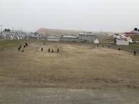 このままでは児童たちの活動に支障が出るとのことで、PTA役員さんが声を掛けると、翌日の4月9日(火)には朝からたくさんのお父さんたちが集まり、グラウンドで石拾いをしてくれました。2時間以上にわたっての作業のおかげで、大量にあった砂利はすっかりなくなっていました!ありがたくグラウンドを使わせていただきます!