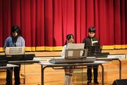 引き続き、始業式が行われました。6年生の児童が弾いてくれた伴奏で、元気で明るい声で校歌を斉唱。そのあとの校長先生のお話もしっかり聞いていました。