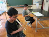 学芸会の準備で体育館が使えず雨でグラウンドも使えません。子どもたちは校内で様々活動しています。