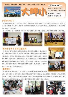 児童も先生方もみんなが笑顔で生活できる学校であることが、私たちの目指す『安心、安全、大岬』です。