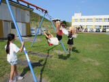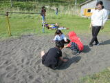 業間の子どもたちは思い思いに遊んでいます。先生方も一緒に遊んでいます。