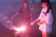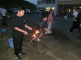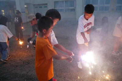 天気がよく絶好の花火日和の中、児童と保護者が集まり花火大会で盛り上がりました。