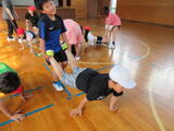3~4年生が体育館で手押し車じゃんけんをしていました。