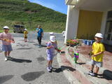 本日3校時、3年生は理科で虫とり、1年生は生活科で水遊び。