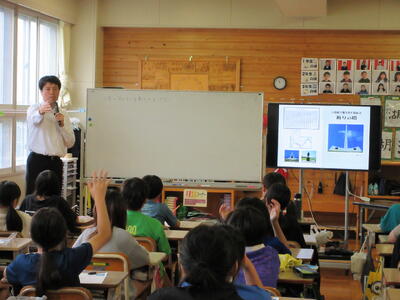 先日大岬小に届いたばかりの『新しいプロジェクター』を全校にお披露目する機会にもなりました。