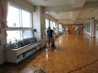 夏休みで子どもたちがいない間に、2階教室やホールのワックスがけ、換気扇や普段できない場所の掃除など大掃除を行っています。