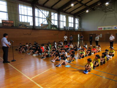始業式では、校長先生のお話のあとに、代表児童2名が1学期の反省と2学期の抱負を発表しました。